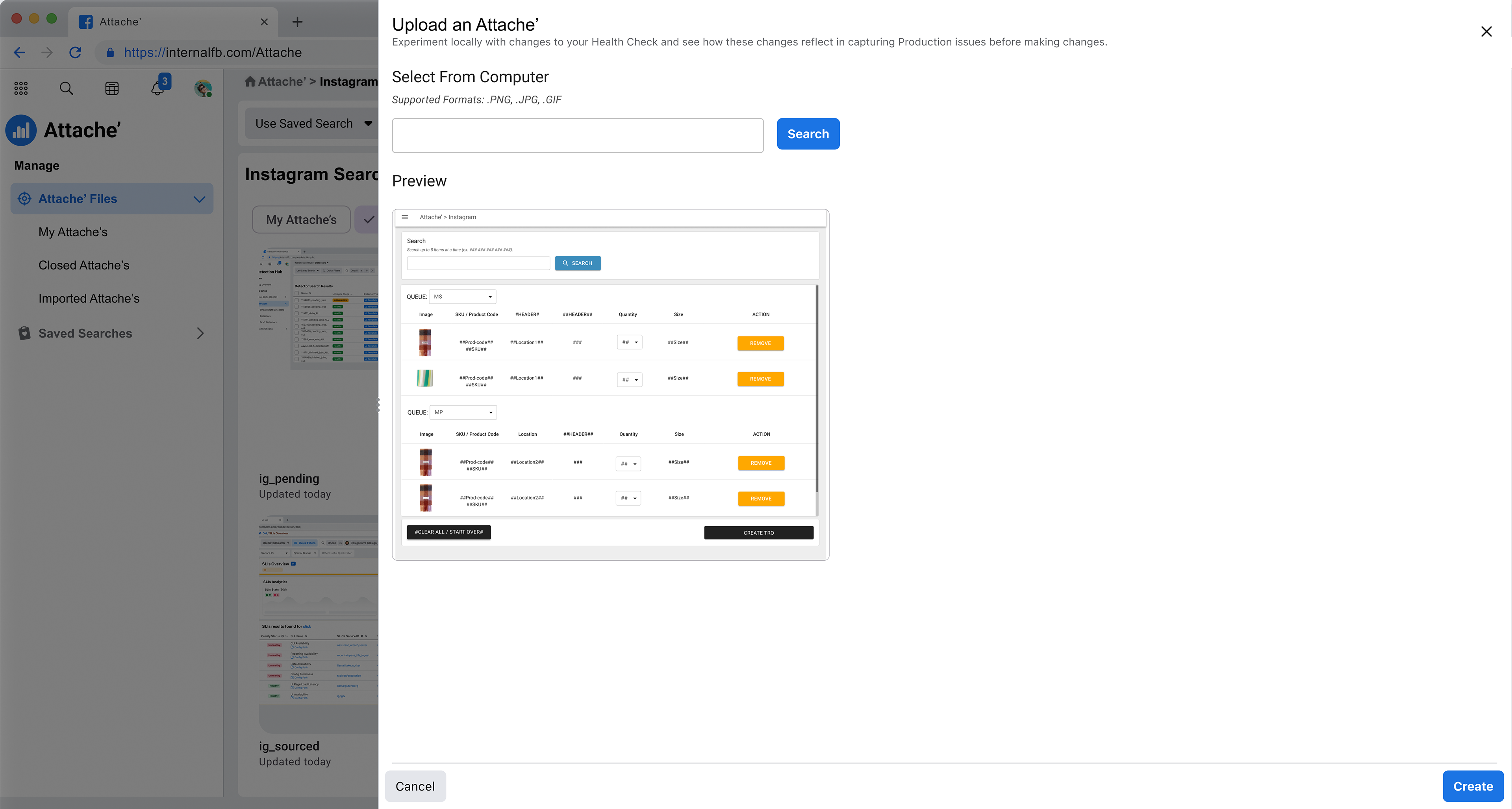 The purpose of the Attache' tool was to manage photo attachments for sharing to supplement the Task internal ticketing system. I joined the project with the prospect of modernization and an emphasis on efficiency. This project was a second-change attempt, picked up during the annual Meta Hackathon, and previously started by a different team, so there were assets to build (and improve) upon.